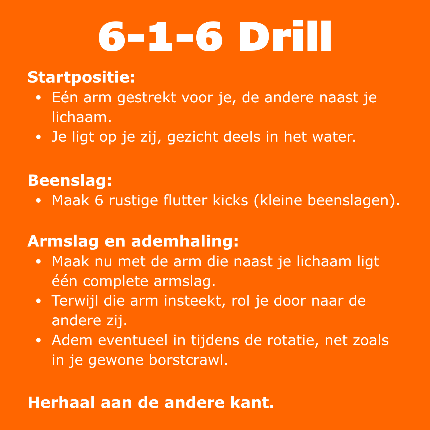 Een veelgemaakte fout: met het hoofd mee willen draaien. Maar je hoofd blijft neutraal, je kijkt recht naar beneden. De tip kan zijn, zwem recht over de zwarte lijn naar de overkant. De rotatie komt hierbij uit je schouders en romp. Denk aan: